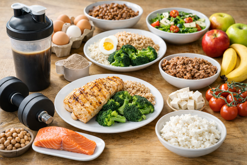 筋肉をつける食事の理屈がわかってくると、次に気になるのが「じゃあ実際に何を食べればいいのか」ということです。ここで多くの方がつまずくのは、知識はあっても日々の食事に落とし込めないことです。たんぱく質が大切だとわかっていても、毎日鶏むね肉だけでは飽きますし、仕事や家事で忙しいと、自炊が理想だとわかっていても継続が難しくなります。