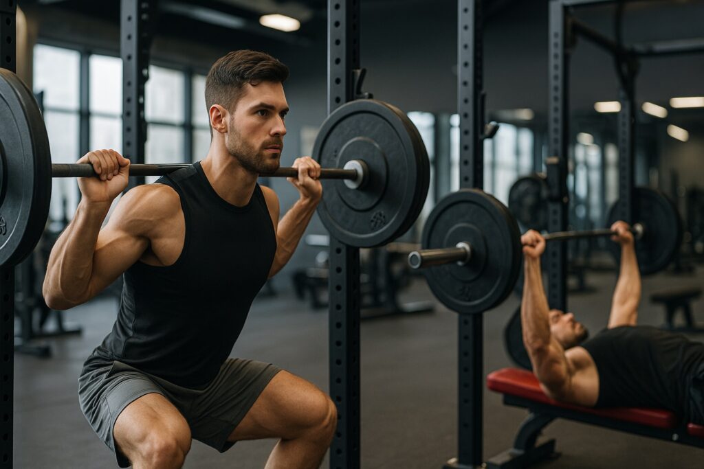 筋肉痛が残っている部位を避けて他の部位を鍛える「置き換え」が最も安全で効率的な方法です。例えば脚が筋肉痛なら上半身、背中が痛いなら脚、胸が痛いなら肩や腕、といったように切り替えることで、痛む部位を休ませながら他の部位を成長させることができます。これによりトレーニング習慣を途切れさせずに続けられ、効率的な成長も期待できます。